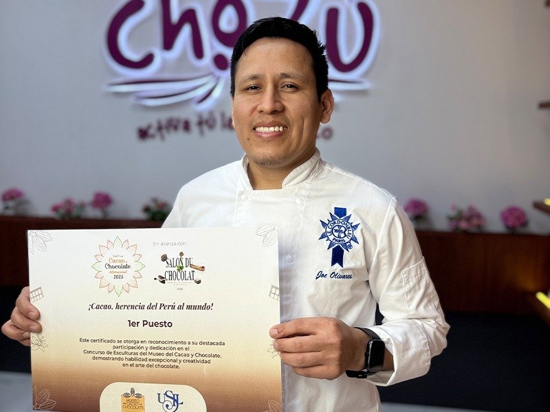 El Salón del Cacao y Chocolate 2025 fue una vitrina de lo mejor que ofrece el Perú en cacao, chocolate y derivados amazónicos. Y este año, Chozú se llevó un reconocimiento especial: nuestro chocolatier Frank Olivares obtuvo el primer puesto en el concurso de esculturas de chocolate, un logro que no solo resalta el talento artístico, sino también la esencia innovadora que nos define.